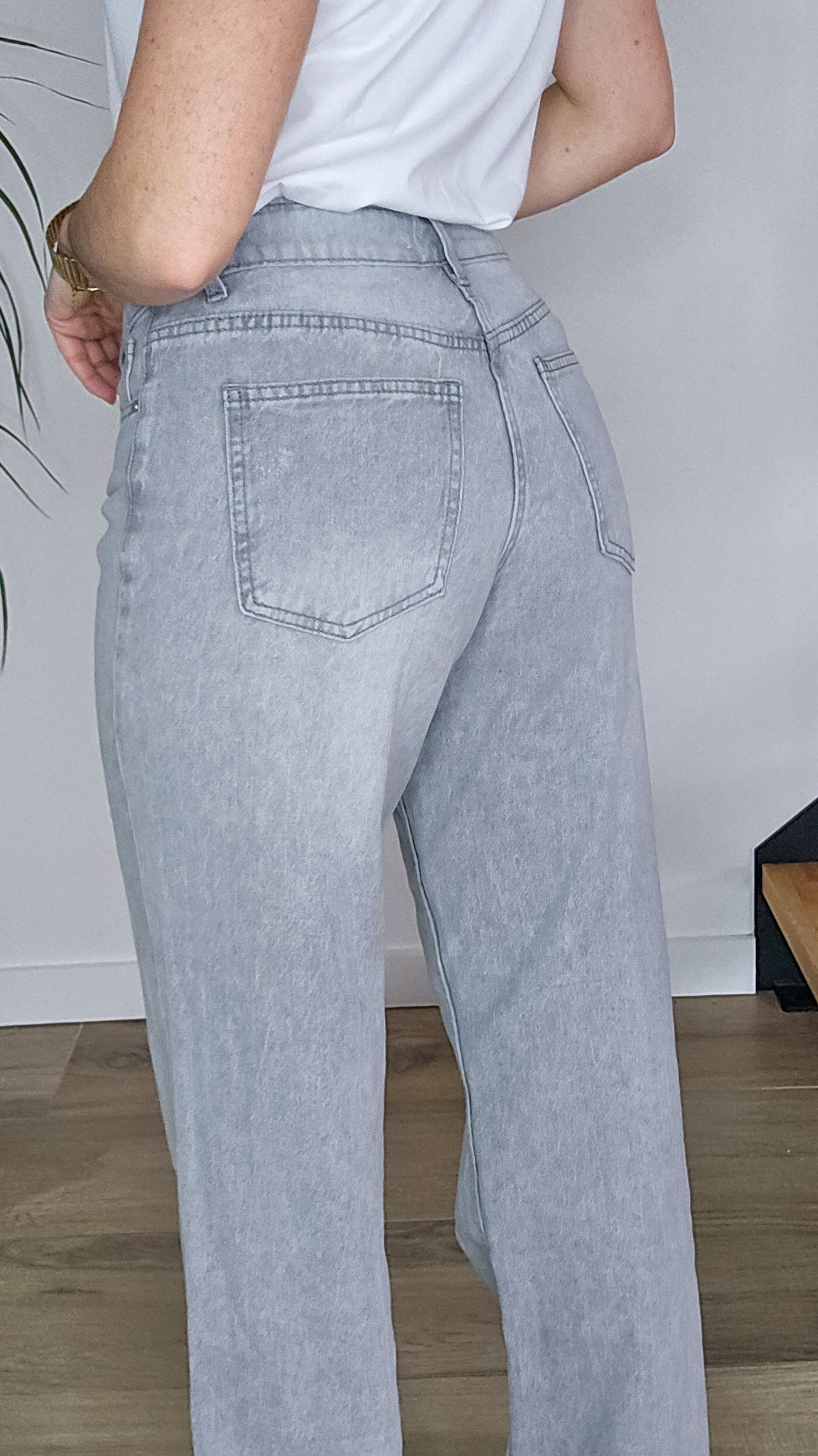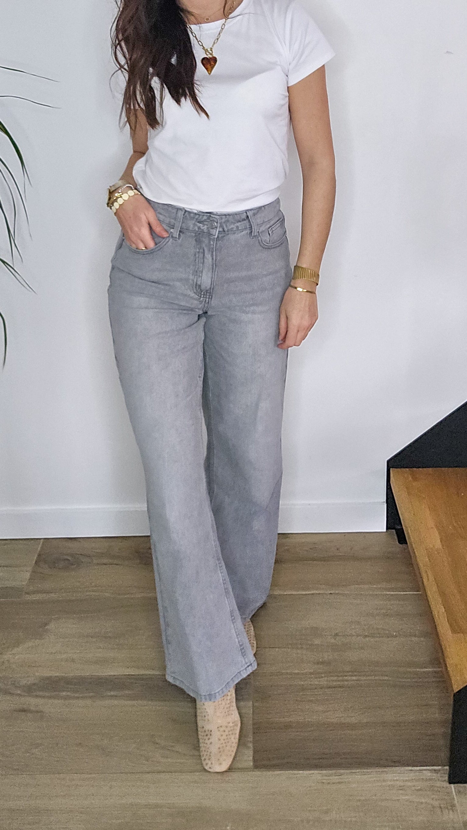 🩶Jean Wide Leg Gris Délavé – Taille Haute & Confort Stretch