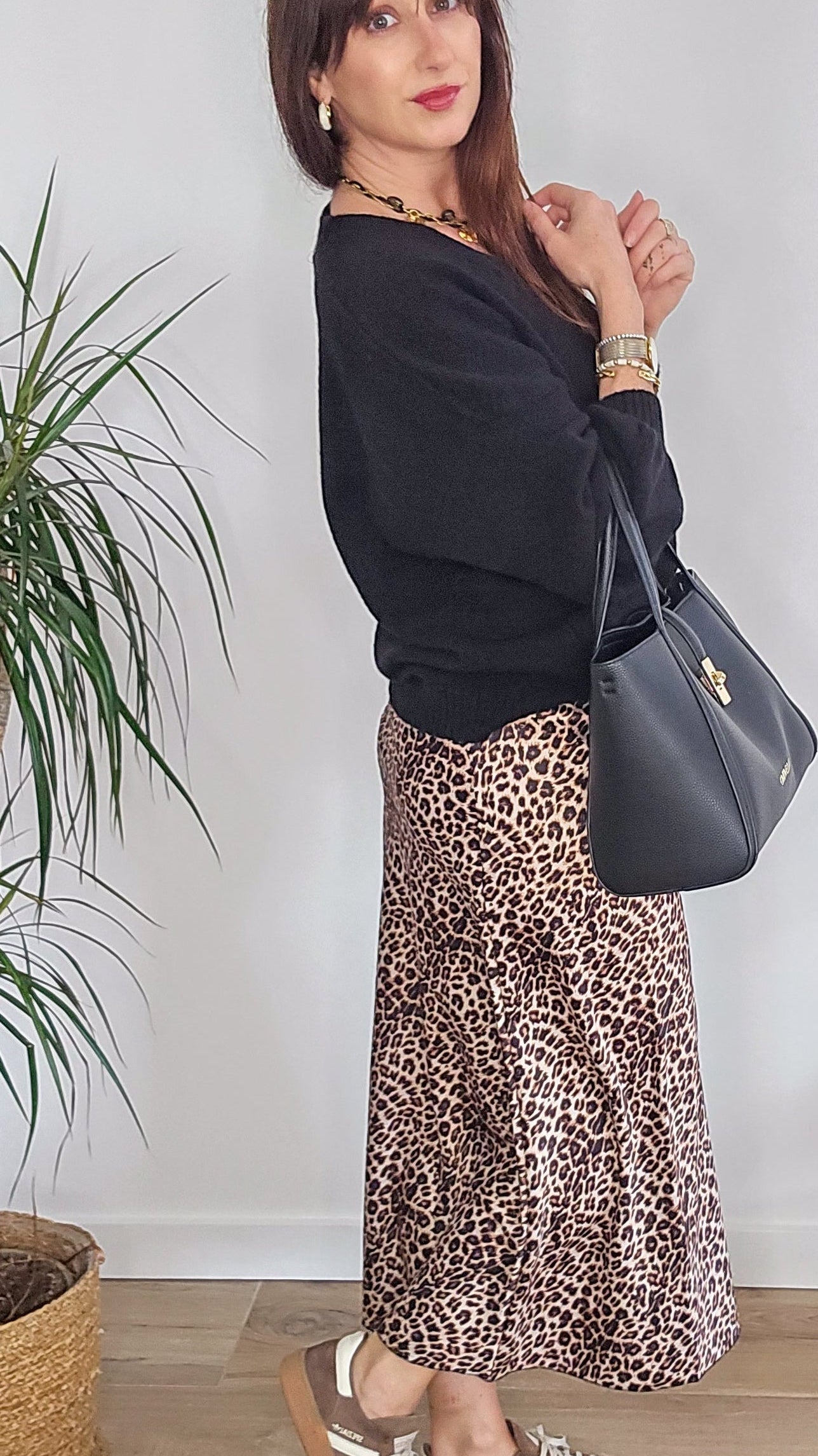 Jupe Savanne imprimé léopard ultra tendance, elle apporte immédiatement une touche féminine, audacieuse et élégante à votre look.